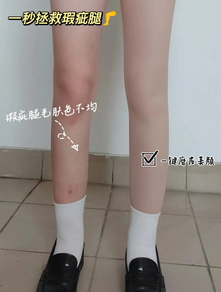 腿上的暗沉不均匀、磕磕碰碰的淤青、鸡皮,通通一键磨皮掉,比你往脸上打遮瑕更自然。