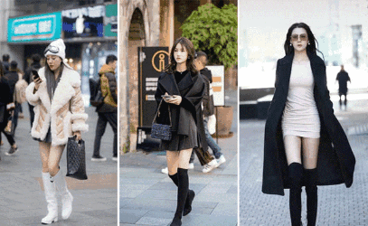 在寒冷的北方,穿外套搭配裙子,适当露肤看起来也很显瘦。