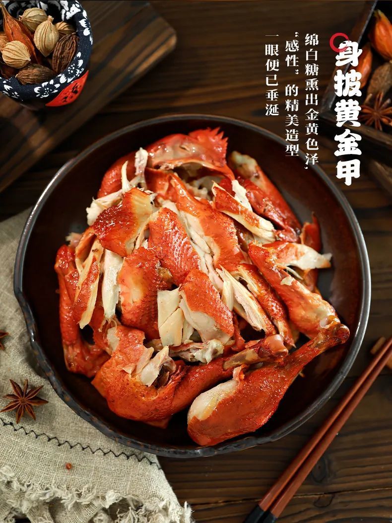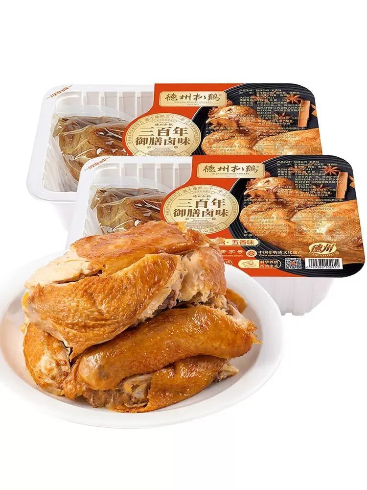 德州扒鸡是著名的德州三宝(扒鸡、西瓜、金丝枣)之一。德州扒鸡宣称采用自由农场养殖的公鸡,每一只鸡都有编码,每一只扒鸡的源头均可追溯。该款产品是经典的五香味,“色泽金黄,很有食欲”“微波炉高火4分钟,吃的时候会很软糯,骨头都不用剔了,直接自己掉出来”。咸度上,也有买家认为“骨头酥烂入味,连最不爱吃的鸡胸肉都很有味道”“单吃可能会有点咸,可以配饭吃”。