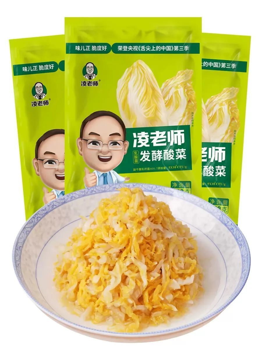 这款凌老师发酵酸菜的配料是白菜、水、食用盐、副干酪乳酸杆菌HD1.7,被认为“纯正东北酸菜味,有自己的特点”。和南方一整颗的大酸菜不同,这款酸菜是细丝状的“酸菜丝丝”,整颗菜比较嫩,炖骨头、炖粉条都是不错的搭配。味道上,只有“简单的酸味”“没有防腐剂的异味”,一名东北消费者建议“想吃酸的少洗或不洗,想吃不太酸的多洗两遍”。不过,也有部分评论反映小贵和包装渗漏问题。