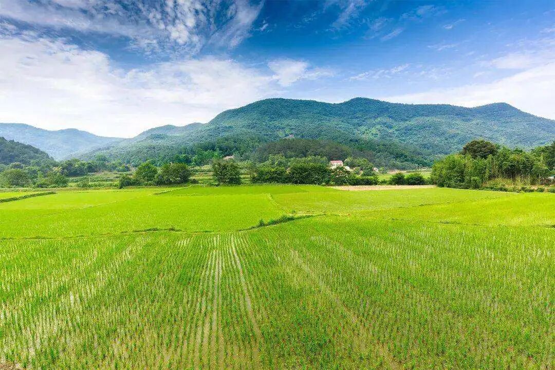 水远又山重,梦里相逢。荷花今日映天红。青鸟殷勤飞稻陇,芳气融融。 岭壑一望中,黛瓦重重。小桥流水午鸣钟。祖母倚门长眺望,心沐春风。