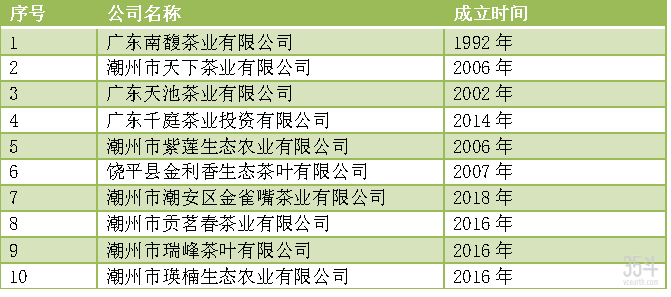 表3:2022年潮州市十强茶叶企业 来源:潮州功夫茶评选大会