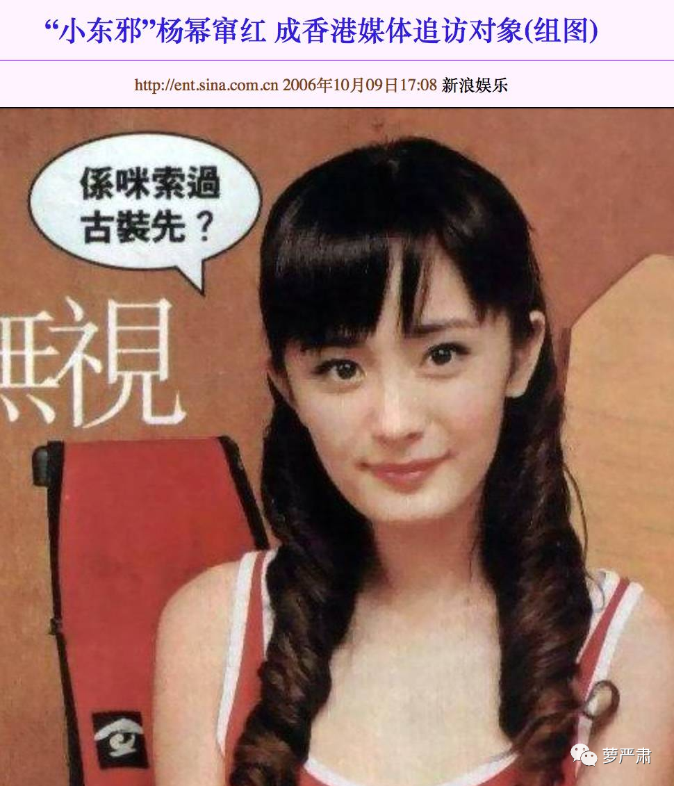 那时候杨幂还是中学生,瞎说话瞎往网上写也不说明什么。《神雕侠侣》开机的时候她才18,又是挖坟又是找旧照有没有比中指什么的。但是她很快适应了艺人这个职业习惯了议论,演完郭襄她已经在香港有知名度了。