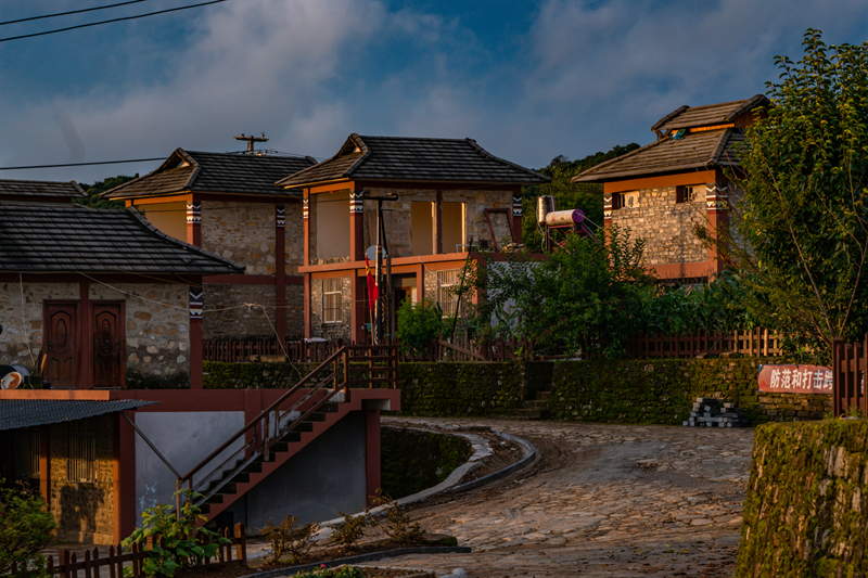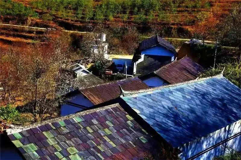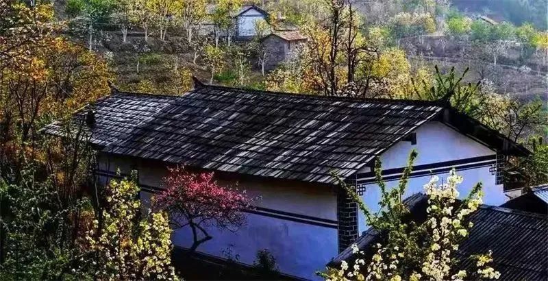 各种花果掩映下的石板房