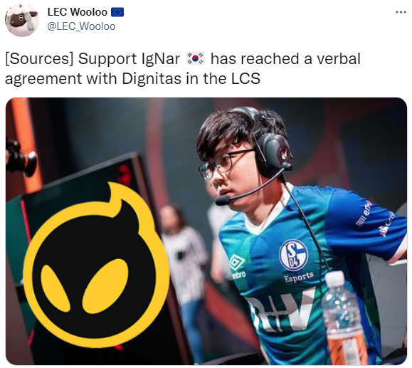 韩国辅助选手IgNar已经与LCS的Dignitas战队达成口头协议。