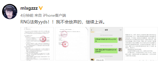RNG法务yyds!!我不会放弃的,继续上诉。