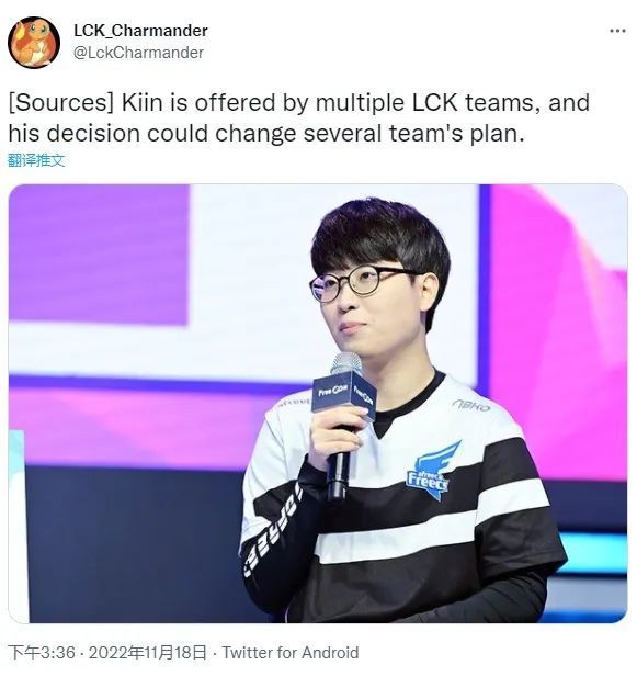 今日外媒记者在其个人推特上发布爆料称:KDF上单Kiin收到了多支队伍的报价,他的决定可能会改变几支队伍的计划。