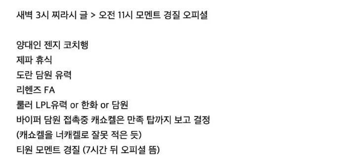 Viper接触DK,对Canyon-ShowMaker-Kellin满意,会看上单来决定。T1.Moment离队(7个小时后官宣了)。”