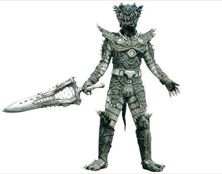 两只手臂上都戴着龙的头部形状的剑,除了炫耀能粉碎3米厚的铁以外,盔甲一样的身体即使同时受到两个假面骑士的必杀技也能反弹的防御力。另外,从坚硬的手臂可以发射破坏光弹,从头部巨大的两个角可以发射1万伏特的雷电,因此具备了飞行能力。