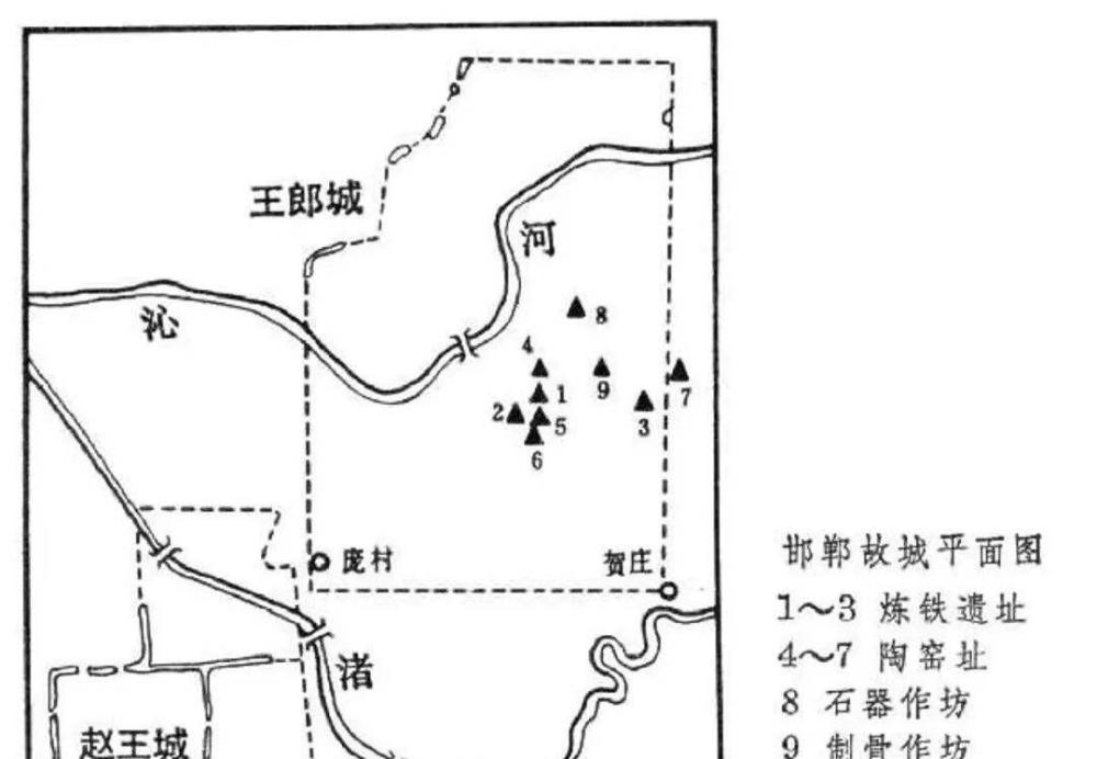 战国时期重要的冶铁中心——邯郸及其冶铁点分布图