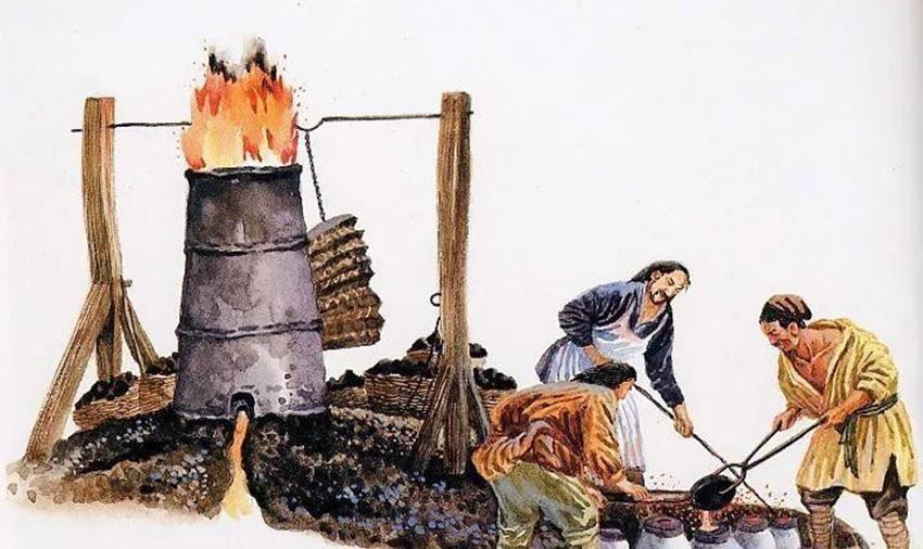 【铁制工具最早出现于公元前1500年左右。大约在一个世纪之后,居住在亚美尼亚山区的查莱比斯部落学会了将熟铁放入炭火中加热,然后淬火,再加热、锤打,经过轮番加工处理,使铁质变得十分坚硬。在进行上述加工处理的过程中,由于偶然在铁的表面溶进了碳微粒,因而制成了最初的钢。公元前1200年前,这种新的冶金技术已在整个地中海东部地区得到广泛采用。】——T·N·杜普伊《武器和战争的演变》
