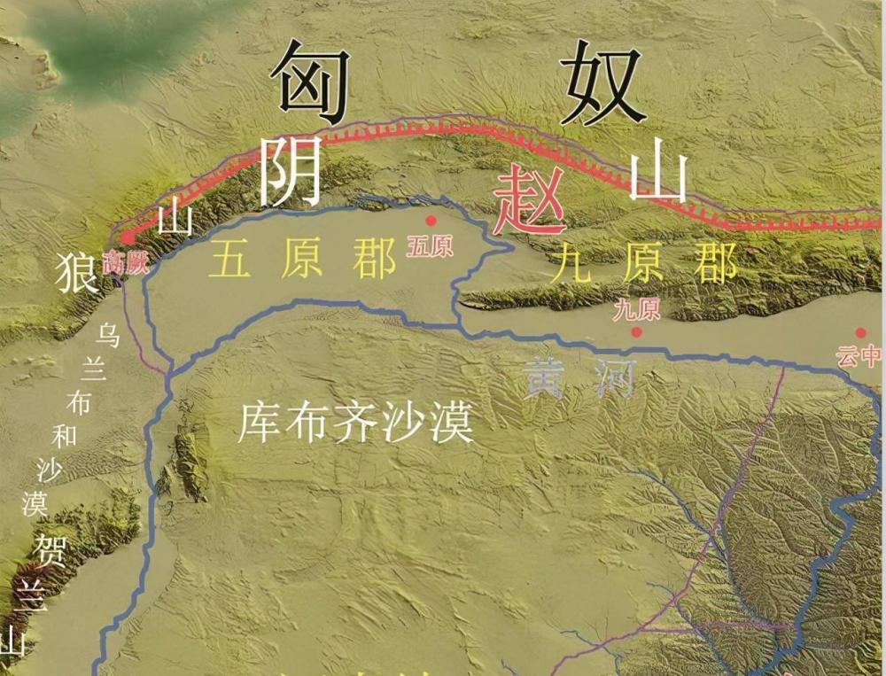 北河套地区的赵国云中郡、九原郡、五原郡示意图