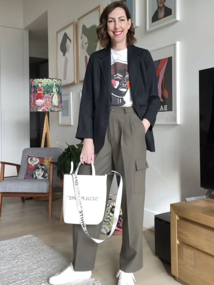 最后是来自澳洲博主Sally的一衣多穿,这条很工装风的西裤我蛮喜欢,所以看到她这四套搭配就立刻保存了下来,如果你也有工装裤可以这么搭配试试。