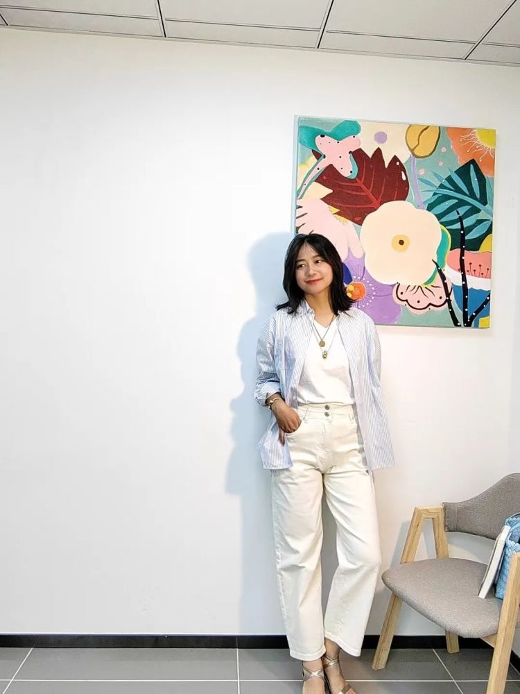 还有这条白裤子,其实我很抵触白色长裤,但是这一条不一样,裤子腰间的设计是两道口子所以会让你忽略到小肚子的肉肉,而且显得腿型很好,宽松的同时又很挺阔不容易走形!