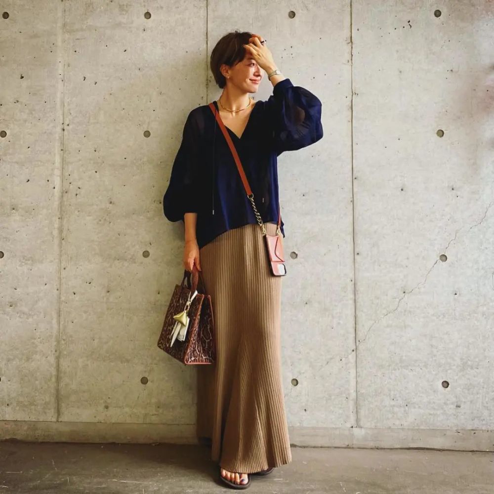 每次想知道优衣库秋季新品,总能在伊藤真知这里提前知道,这一套的单品都是优衣库秋季即将登场的单品,长裙和螺纹半袖衫,看看国内的筒子们有福享受吗,我觉得蛮挑身材的。