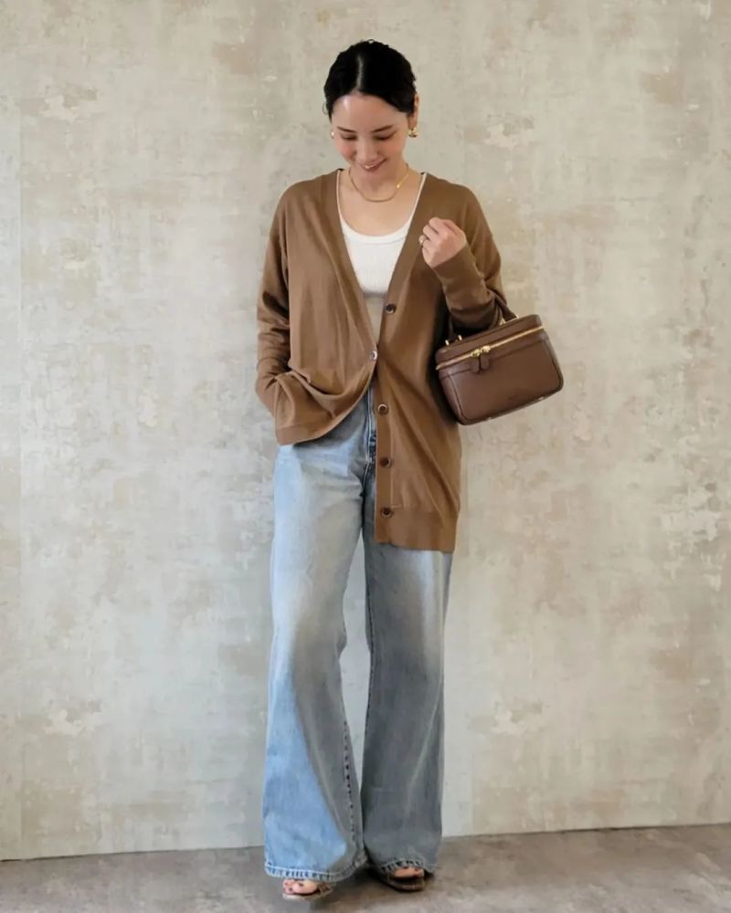 之前本来介绍TAKAHASHI这位博主,但是一直没空,上周她的几套日常搭配都很舒服简约,今天和大家分享其中的两套。算是一衣多穿,牛仔裤是很宽松舒适的锥形裤,外套都是很有秋天氛围的粗呢外套和开衫....单品其实我们也有,大概差个身材?