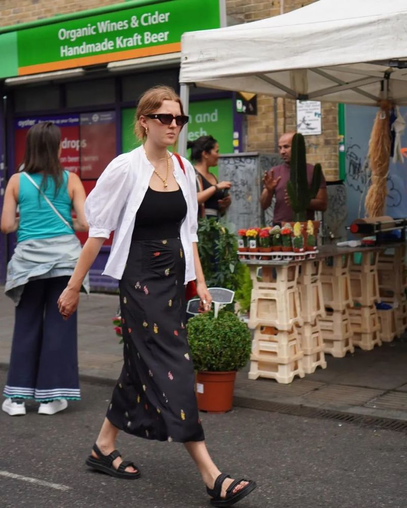 看了下本周的博主街拍,立刻能感觉到秋意浓浓,选择的单品都满足了:裙子和裤子都长了、颜色也都沉了下来,所以本周的博主街拍你可能会看到许多的长裤和长裙,包括夫人我也是开始T恤外面穿衬衫了,因为早秋好像来了: