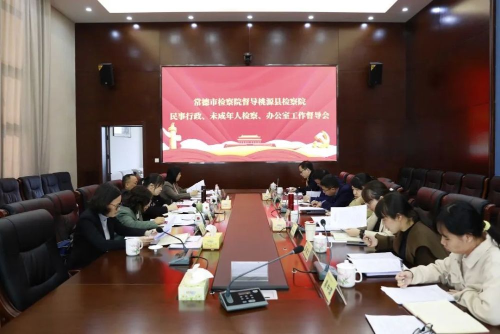 11月8日,常德市检察院党组成员、副检察长黄艳霞一行到桃源县检察院督导民事行政检察、未成年检察及办公室工作,桃源县检察院党组书记、检察长鲁斌,副检察长王海霞,党组成员朱方勇及相关部门负责人、干警参加会议。