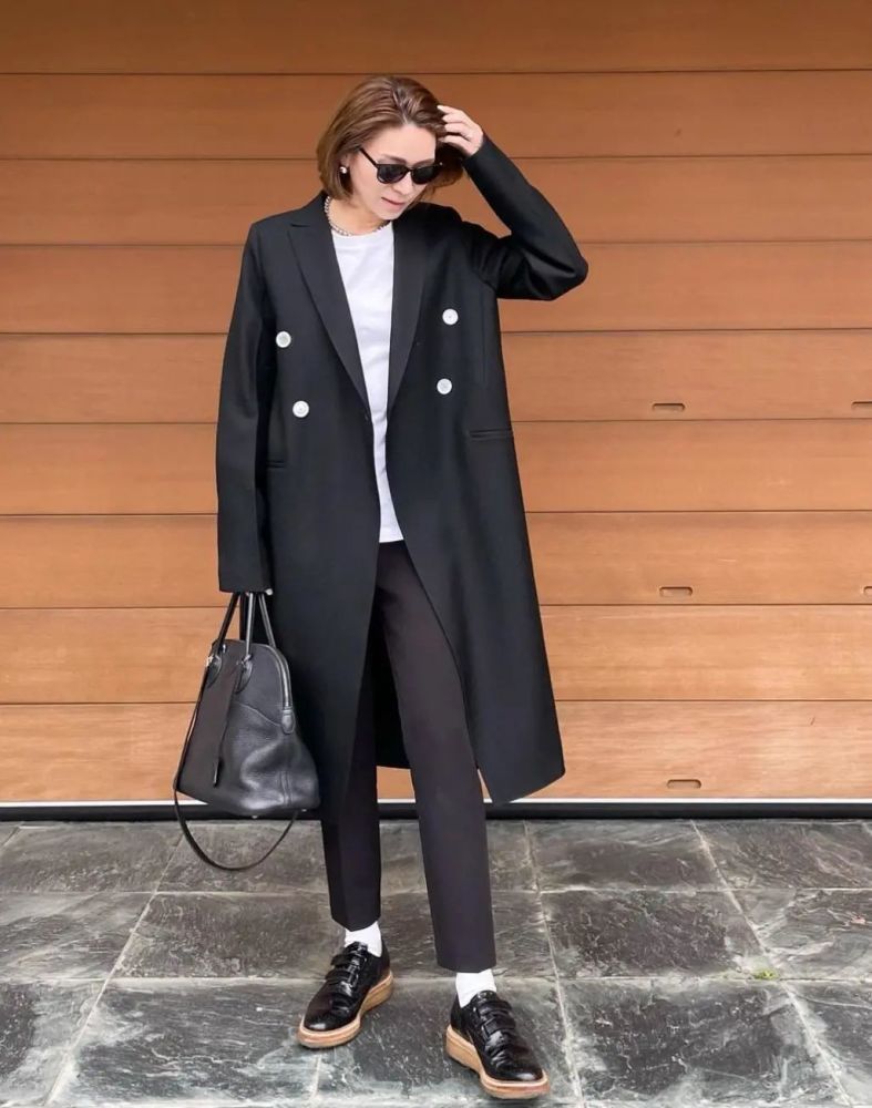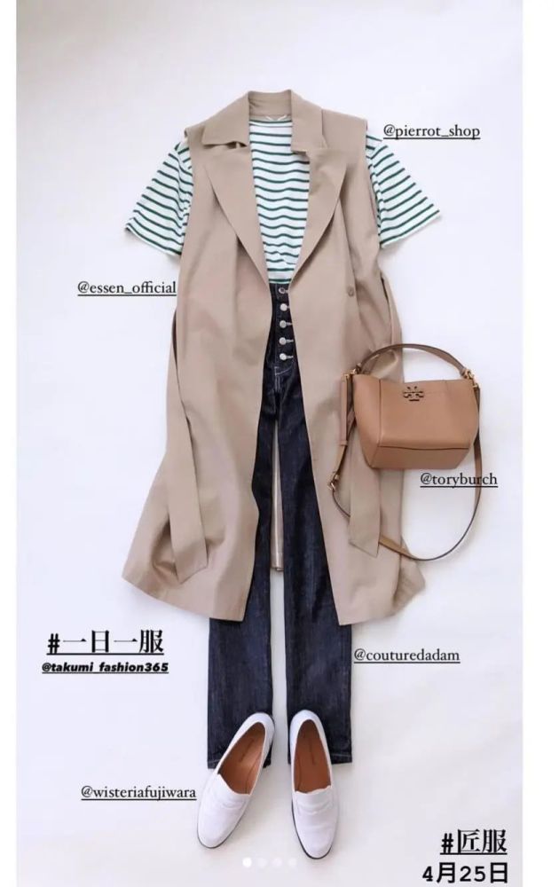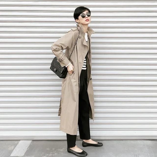 帅气的妈妈根本久任子上周的单品都很熟悉,穿了三年之久的风衣,里面是条纹T恤和黑色西裤,简单又高级,配上她有距离感的脸,觉得是妈妈博主中稍有的酷飒。