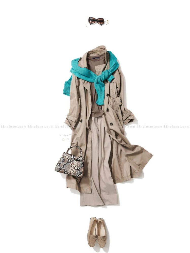 在菊池京子分享的日常搭配中也是经常用到一分为二的穿搭方式,上周的绿色针织是重点。第一套用了绿色针织和白色打底然后是奶色长裤,第二套是加入了风衣的卡其色整体搭配,一冷一暖和类似色两种风格,都很实用。