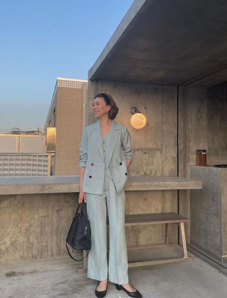大日方的上下搭配更趋于大女人气质,给人感觉像是一个刚刚去讲完PPT的女老板,任意一套的搭配都适合职场成功女性学习。