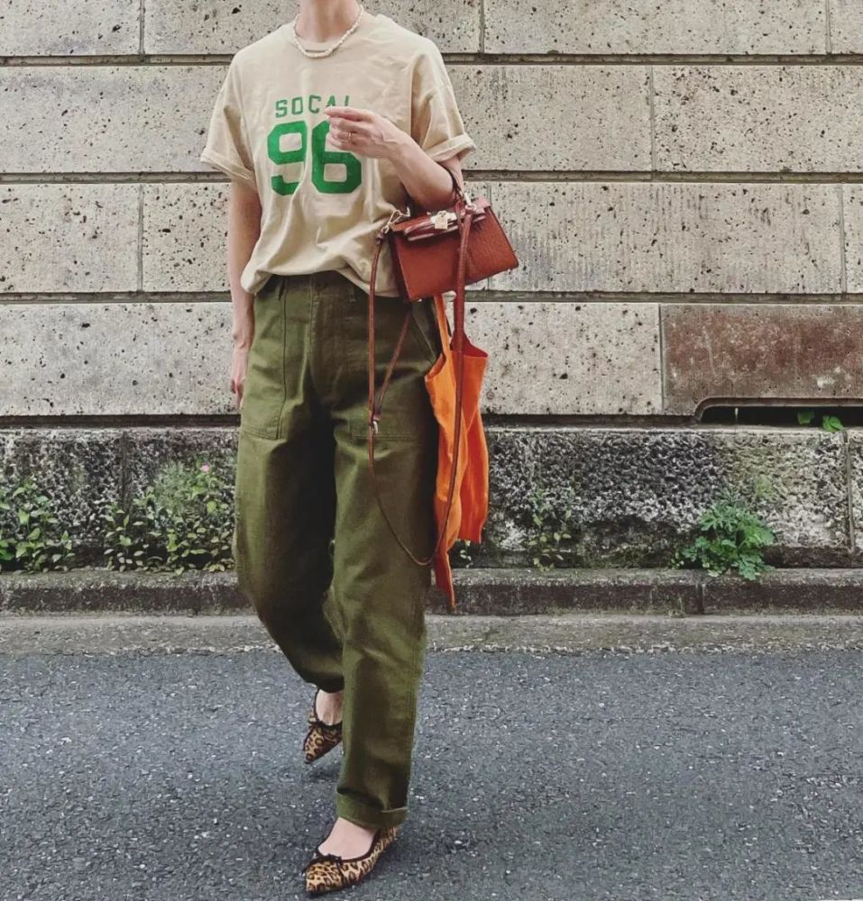 Canaria的搭配也很接地气,而且之前介绍她个人的时候这两条裤子都有出现过,上周她也选择了长短T恤,而且配色很考究。比如第二套就是卡其色和绿色,用橙色来点缀,第一套则是米色和丹宁裤,用粉色鞋子点缀。