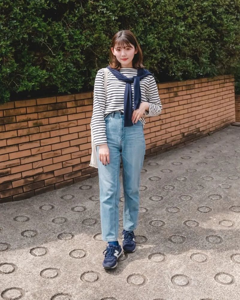 还有上周她的每日一服,还是条纹T恤下面换成了牛仔裤,更休闲和自由。