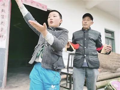 △高元普和孙子高天宇用快板讲述村落和生活的变化。