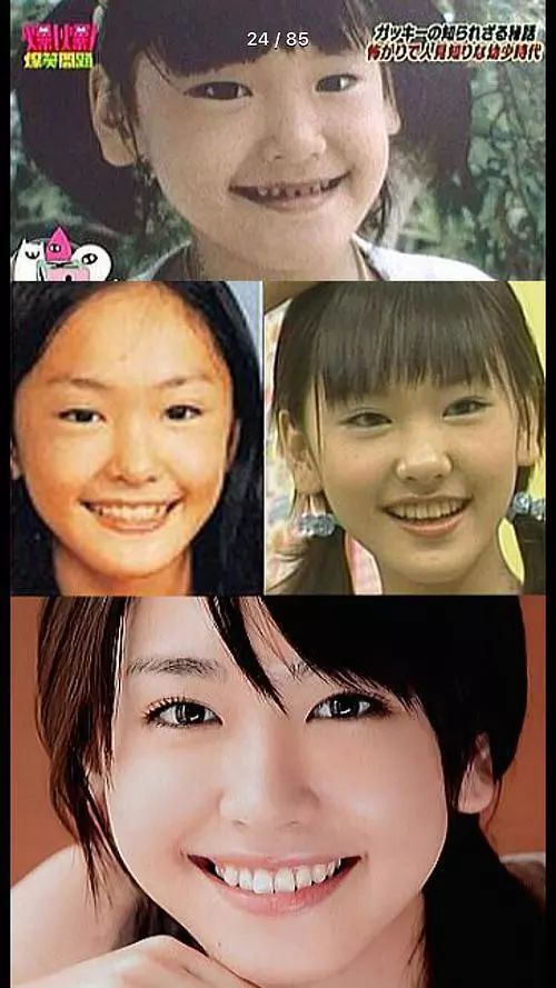 gakki其实和堀北真希有点像,也是做了眼综合+隆鼻,在改善眼睛的同时,保留了鼻子的自然感。