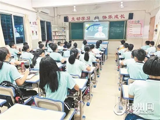 泉州东海湾实验学校学生在老师组织下在班级里观看学习《开学第一课》。