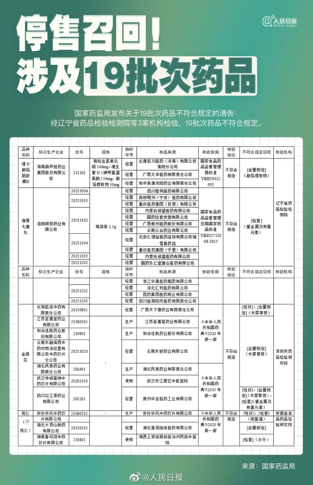 19批次药品停售召回