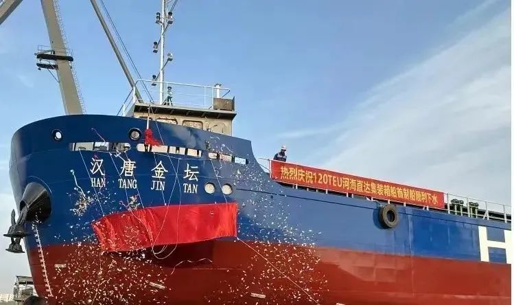 金坛:“汉唐金坛”号河海直达集装箱船正式下水