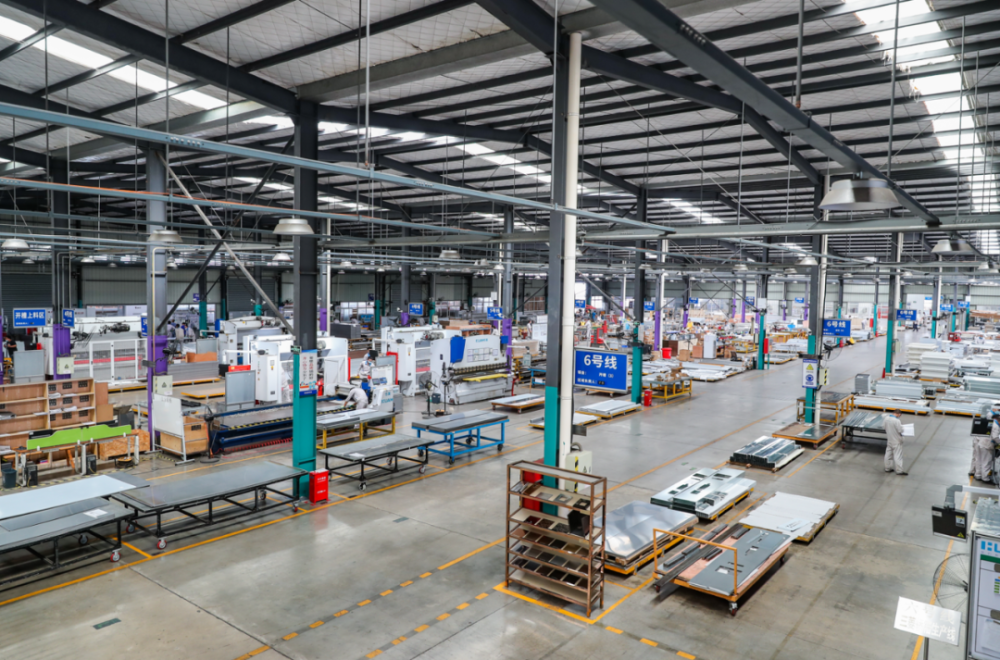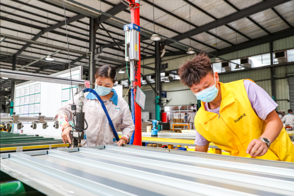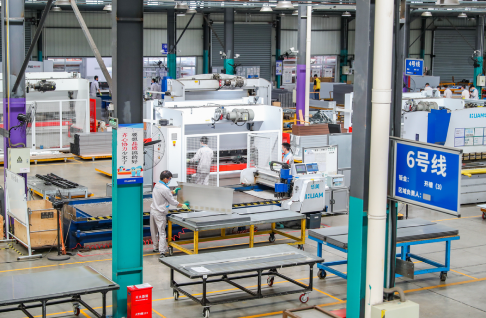 市级文明单位松江企业上海华美电梯装饰有限公司是一家专注于提供电梯工业美学解决方案,集智能梯控系统、电梯配件、人机交互等产品研发、生产、销售于一体的上海市高新技术企业。截至目前,该企业获得发明、实用新型、外观设计等专利200多项。图为公司生产车间场景。