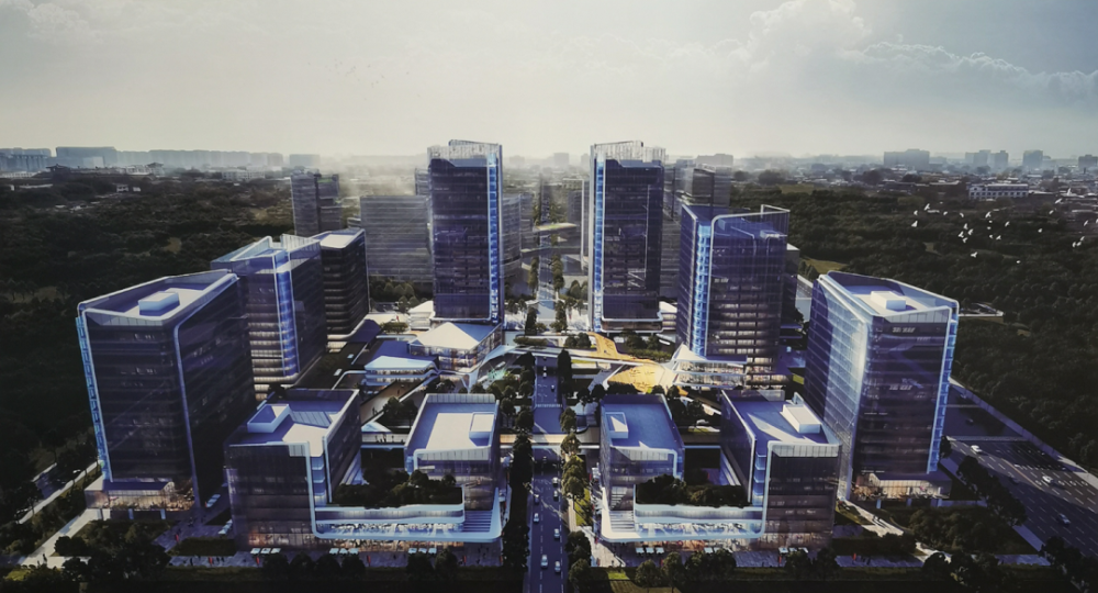 总建筑面积约56万平方米,项目主要以中小企业总部、综合办公、研发、人才公寓、商务酒店及配套为主,致力于打造成一个开放共享、融合办公、创新研发的产业园。
