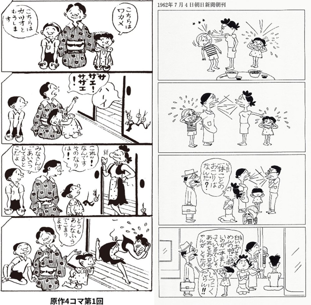 漫画从最早刊载的《新夕刊》换成了《朝日新闻》,直到漫画完结,长谷川町子只因健康问题两次休刊,除此之外每天都坚持连载,从未间断。