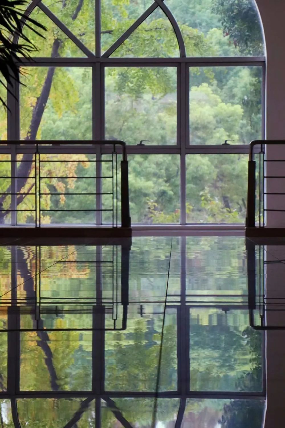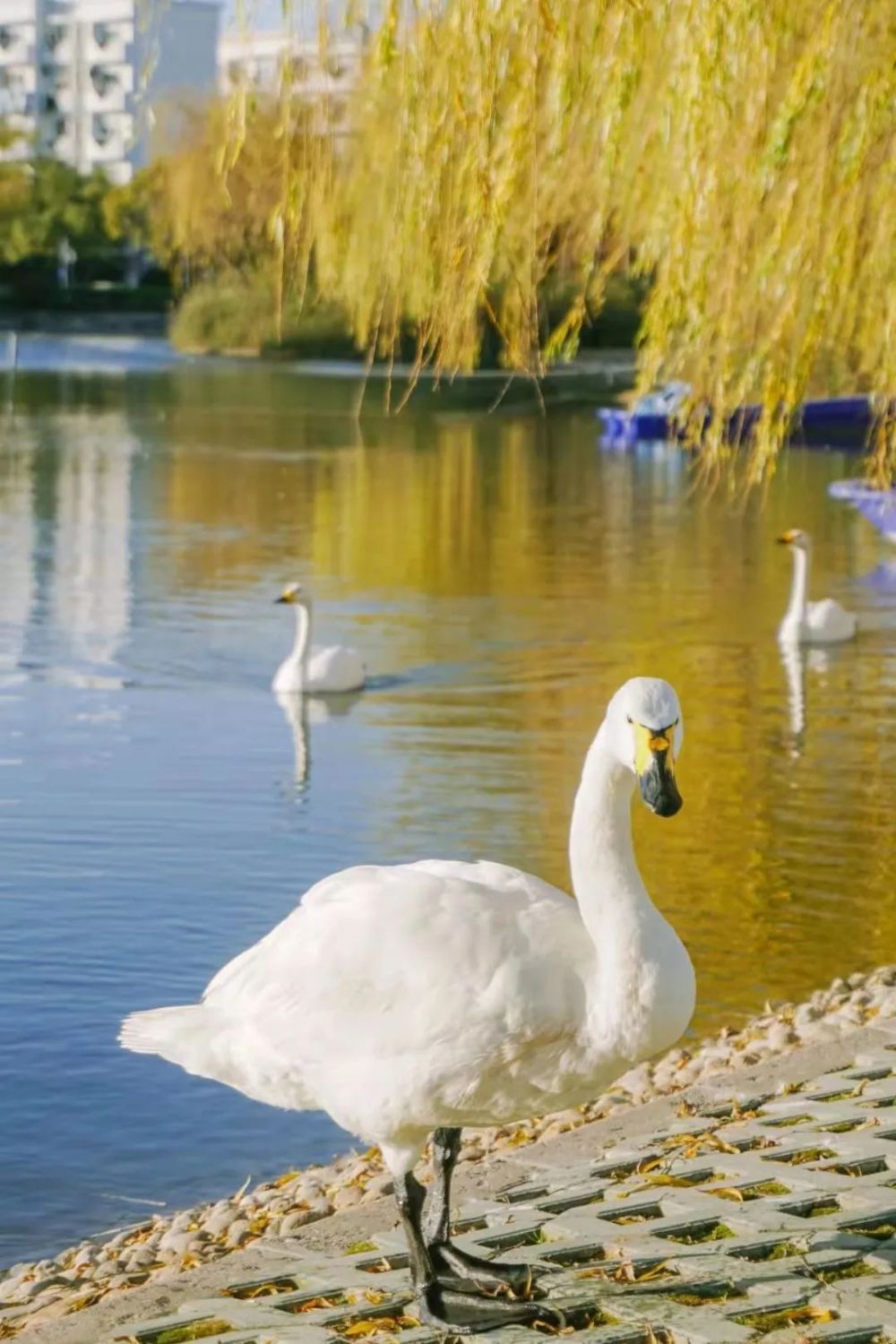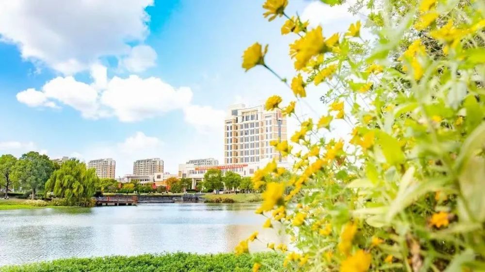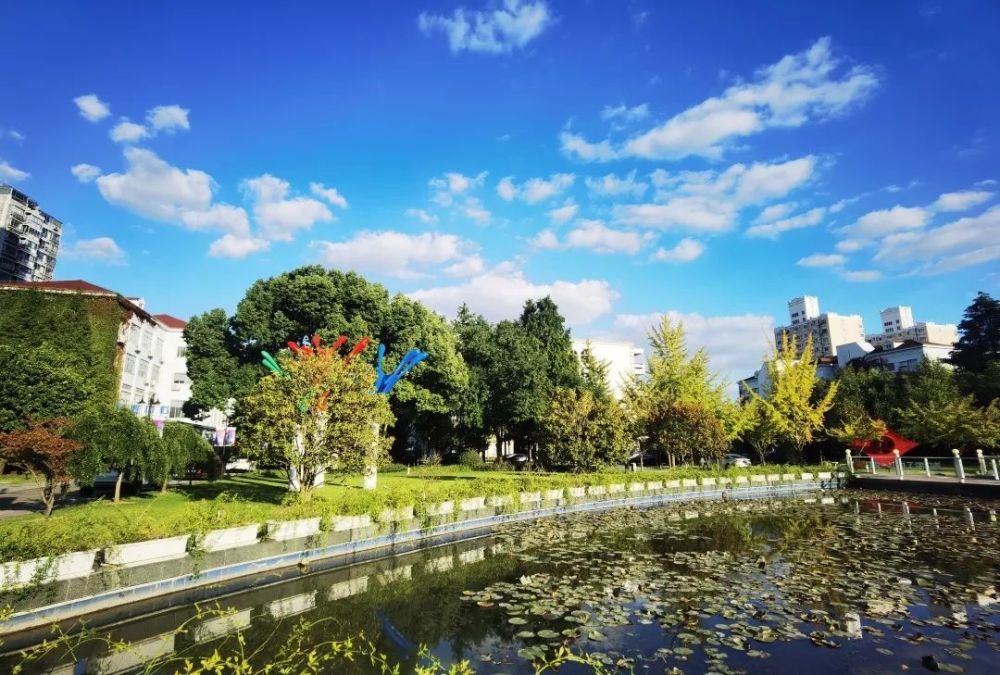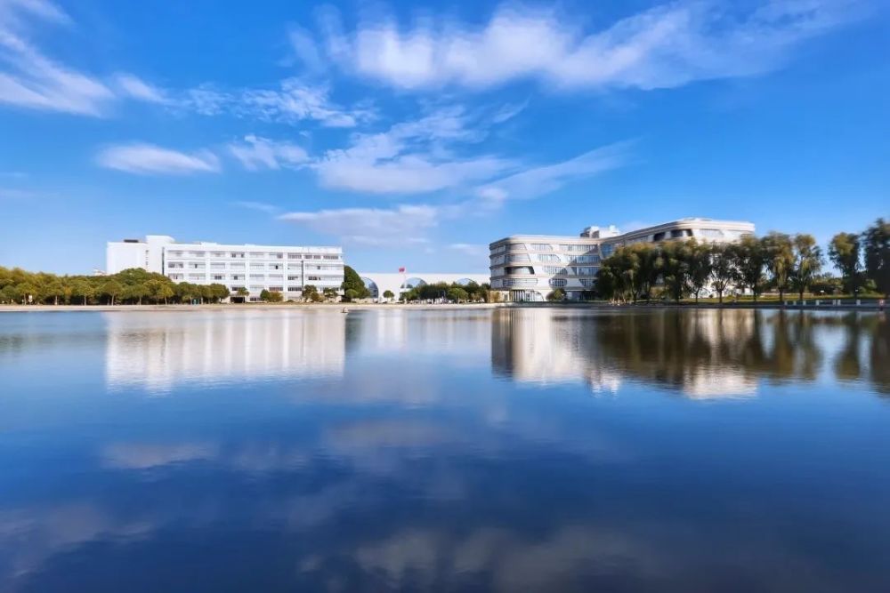波光粼粼的湖面将校园围绕,水天相映一碧如洗
