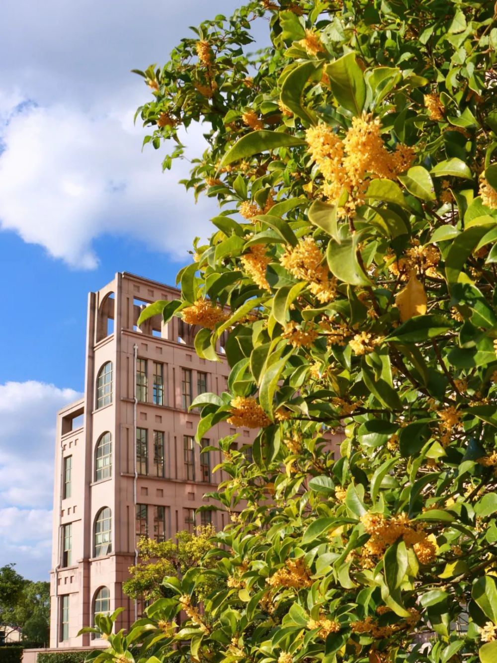 丹枫迎秋、金桂飘香,秋日暖阳照耀在金色的校园,勾勒出浓烈而灿烂的绚丽风光。碧水映兰亭,红枫衬林荫,学子们细嗅桂香,踏着落叶漫步校园,随处可见如油画般浓郁的美景。今天,小布就带您一起“云游”沪上高校,共同领略宜人的秋日风景↓
