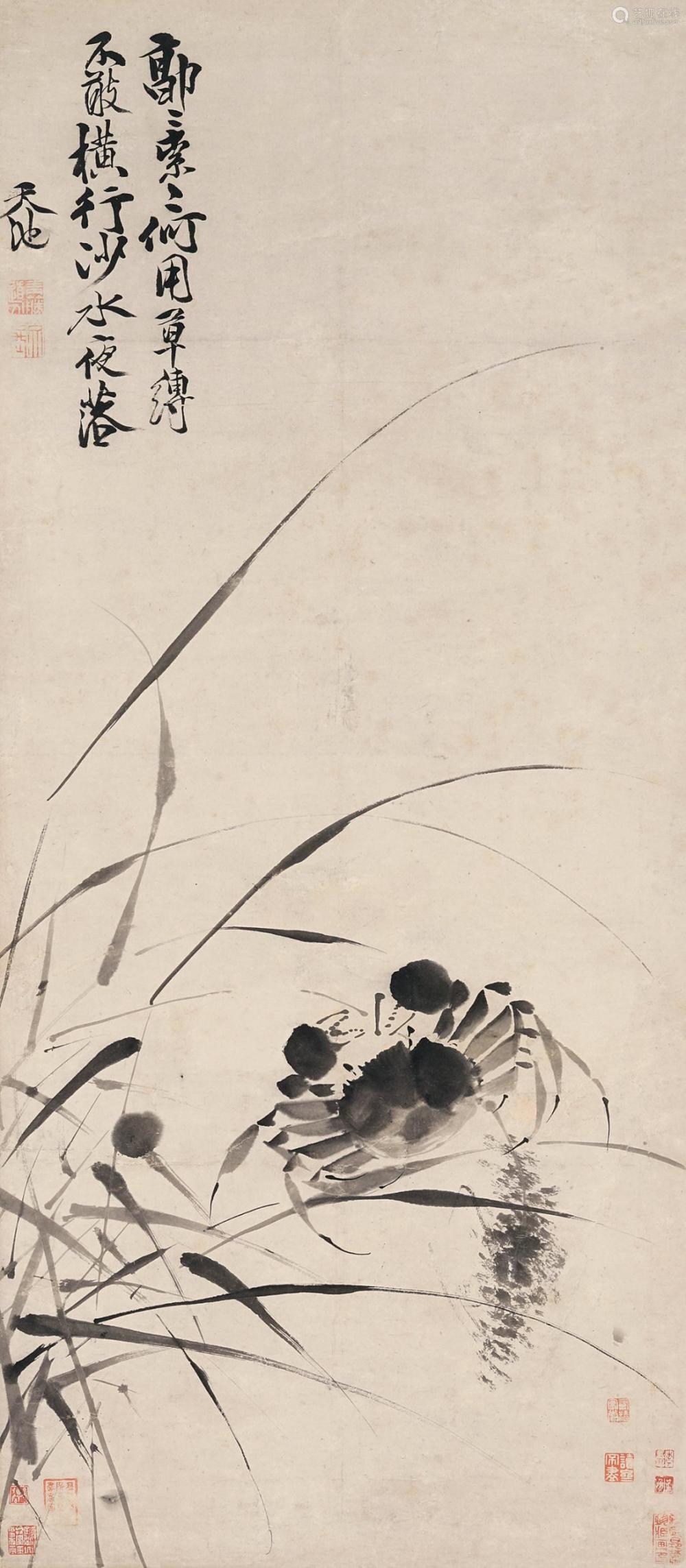 晚年乡居的日子里,徐文长越发厌恶富贵者与礼法之士,所交游的大都是过去的朋友和追随他的门生。据说有人来访,徐文长不愿见,便手推柴门大呼:“徐渭不在!”他一生不治产业,钱财随手散尽,此时只得靠卖字画度日。但手头稍为宽裕,便不肯再作。倒是一班门生和晚辈的朋友,或骗或抢,常常得到他的杰作。徐文长似乎特别嗜蟹,许多题画诗记载了朋友们用活蟹来换他画蟹的经过。最后几年,徐文长身患多种疾病,大约画也不能常作,生活更为贫苦。《徐文长文集》中有《卖貂》、《卖磬》、《卖画》、《卖书》诸诗,显示出这位大文学家艺术家凄凉的晚境。