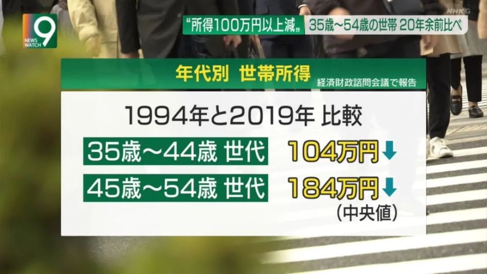 报告分析了1994年至2019年收入结构的变化,与1994年相比,2019年日本家庭收入出现了大幅减少。其中35岁至44岁的工薪家庭中减少了104万日元(约5.7万元人民币),45岁至54岁的工薪家庭,更是大幅减少了184万日元(约10.1万元人民币)。而据日本内阁府的统计显示,2020年日本公司职员平均年收入为424万日元(约23.3万元人民币),由此可见,在过去20多年间,日本工薪家庭的年收入大约减少了三分之一。