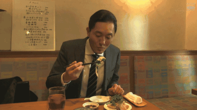 每当完成工作任务后,饥肠辘辘的他放下一切,专心地寻找着东京街头巷尾能勾起他食欲的小店,美食总是与他不期而遇。