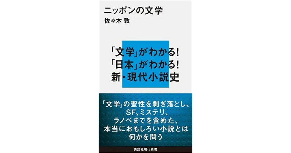 佐佐木:在我的拙著《日本的文学》的结尾部分,关于2010年代的小说世界将会如何发展,我提到了伊坂老师的例子。书中,我首先指出了现在只有在文艺杂志上刊登的小说才会被列入「文学」奖项(芥川奖)的候选这一事实。在此基础上,我将像这样被明确划分出的「文学」,和身处其下位的「推理」、「SF」(注:科幻)等其他分类的「娱乐小说」分类,试着整理出了一份从70年代左右开始至今的小说发展谱系。