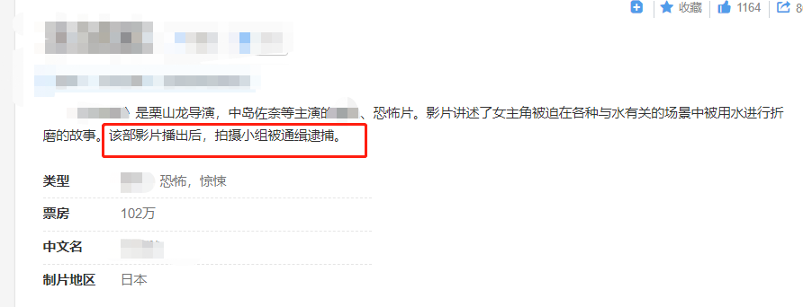 但这部大热影片给予了中岛佐奈名气的同时带给她无尽的伤痛。影片描述了中岛佐奈在水中遭受到各种折磨的事情,这部影片在拍摄完成之后整个摄制小组都遭到了通缉逮捕,因为拍摄手法太残酷了。