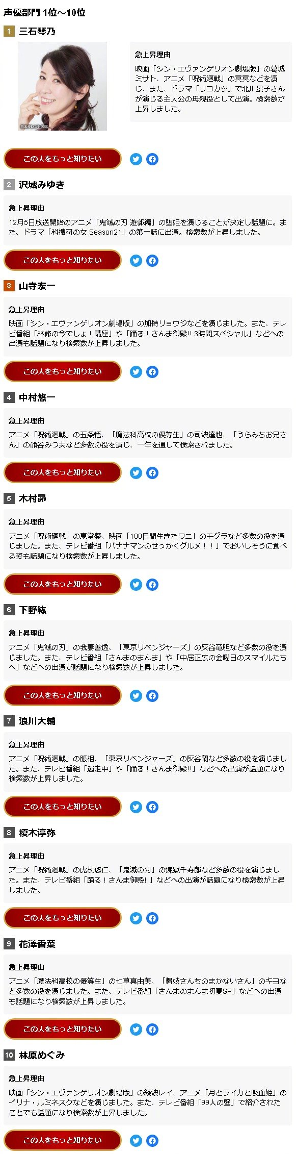 岛国雅虎“2021声优搜索大赏”结果已经出炉,网友们关注度极高的声优前十名也已揭晓。