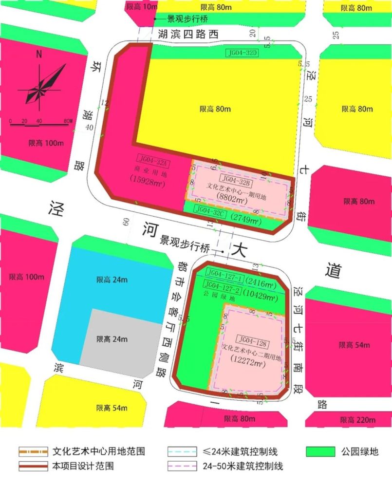 重点设计范围: 泾河新城国际文化艺术中心北侧地块XXJH-JG04-32B与南侧XXJH-JG04-128两块A2文化设施用地范围内的建筑设计,同时兼顾配套景观。明确项目设计理念,并根据项目主导功能,在空间划分、功能营造打造上融合先进策划及运营理念。