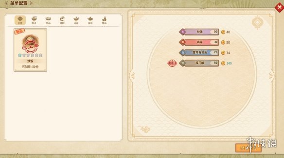在教学之后,可以再点进来把利润很高的桂花酿设置为招牌菜