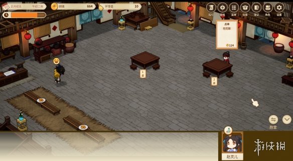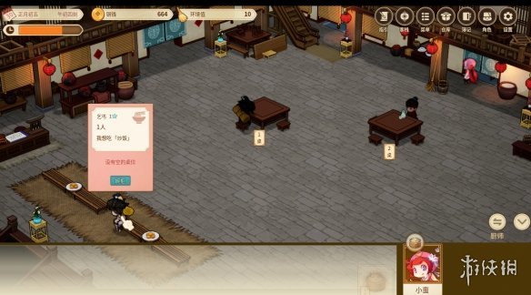 而与前作不同的是,仙剑客栈2省去了将客人接引到指定的位置这一步骤,新增加了例如厨师自动分配菜品开始制作以及跑堂自动开始送菜等功能(在前作中这每一项都需要玩家来操作),先谈优点,这的确节约了玩家的操作,我们只需要考虑好如何在有限的场地将利益最大化——例如婉拒只吃便宜炒饭的乞丐,让喝酒吃肉的老板们上座。