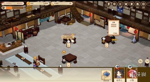 从镇子的任意一个出口离开,就可以回到客栈,伴随着熟悉的仙剑三永安当的音乐(在这里我甚至有种梦回flash同福客栈的感觉),开始我们今天的营业,这时也到了仙剑客栈的核心玩法。