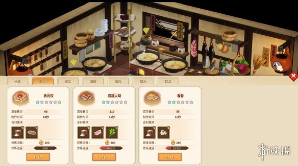 晚上的客栈操作就简单许多了,有一个修炼房可以用来锻炼角色的属性,厨房则可以提升菜肴的等级,在一些关键角色入驻厢房后还可以过去与他们对话推进剧情等等——总而言之一句话:有啥点啥,啥亮点啥。