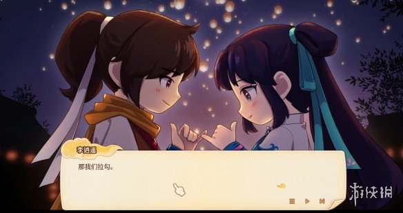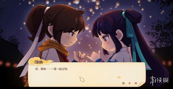而这里的剧情还与玩家的选择有关,如果你在元宵灯会的这天选择谈心的人是李逍遥与灵儿,你就会看到上图中远处二人拉钩的剧情。