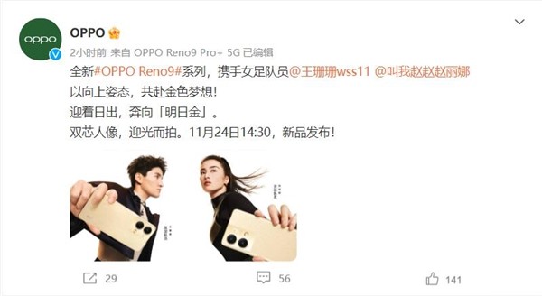 手机访问:wap.265xx.comOPPO Reno9系列新品即将登场:王珊珊赵丽娜两位女足队员代言